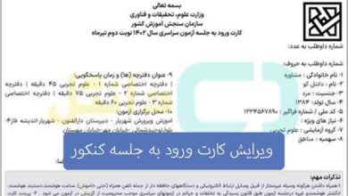 ویرایش کارت ورود به جلسه کنکور سراسری ۱۴۰۵ در بازه زمانی تعیین شده ممکن می باشد. تمامی داوطلبانی که در…