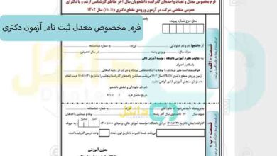فرم مخصوص معدل ثبت نام آزمون دکتری ۱۴۰۴ در انتهای دفترچه ثبتنام درج شده است و داوطلبان باید این فرم…